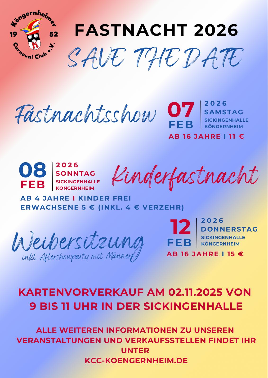 Der Kartenvorverkauf startet am Sonntag, dem 02.11.2025, von 9 bis 11 Uhr in der Sickingenhalle.